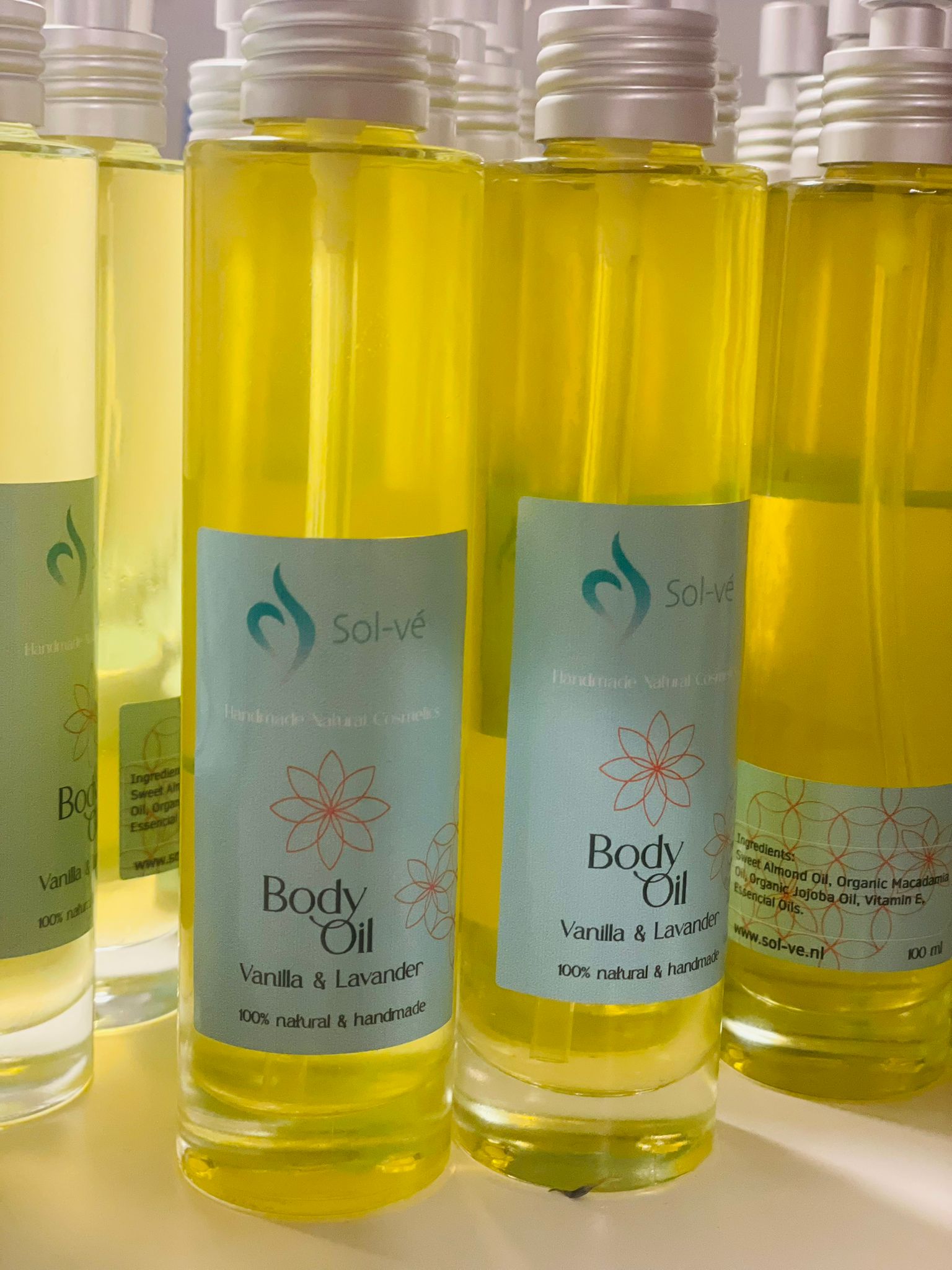 Ik ben dus super trots dat ik naast mijn therapeutische werk nu ook mijn eigen lijn van natuurlijke verzorgingsproducten lanceer onder de naam Sol-Vé.